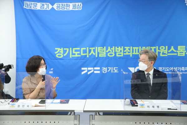 이 지사는 “모든 사람들이 겪는 위험이긴 하지만 사회적 약자라고 할 수 있는 여성들이 겪는 안전에 대한 불안감이 굉장히 크다. 그중에서도 성범죄, 특히 통제 불가능한 디지털 성범죄에 대한 피해가 상당히 크다고 생각한다”며 “디지털성범죄의 특성인 빠른 확산 속도와 피해의 광범위성 때문에 치명적인 피해를 입게 되는 것 같다”고 말했다.