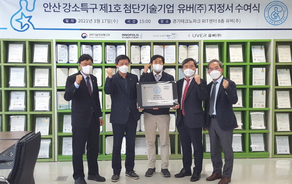 | ▲ 안산 강소특구 1호 첨단기술기업 유버㈜ 지정 |