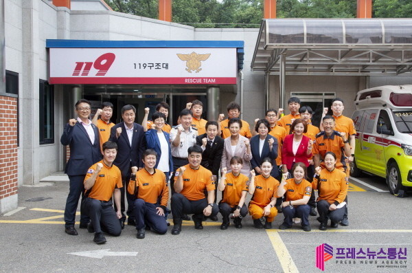 | ▲ 안산시의회 의장단이 11일과 12일 이틀에 걸쳐 지역 기관 9곳을 방문해 제9대 의회 출범을 알렸다. 사진은 안산소방서를 방문한 모습.(사진=안산시의회) |