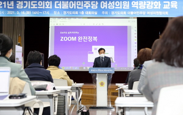 한편, 경기도의회 더불어민주당 여성의원협의회가 주최한 이날 교육은 김미리 회장(남양주1), 최경자 수석부회장(의정부1), 고은정(고양9)·김미숙(군포3) 부회장과 문경희 부의장(남양주2) 등 여성 도의원과 경기도 31개 시·군 의회 여성의원 등 총 70여 명이 참석해 방역수칙을 준수한 가운데 진행됐다.