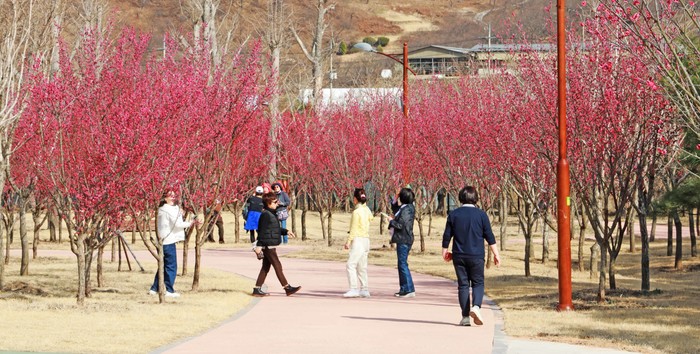 수달생태공원에 펼쳐진 2,345그루의 홍매화는 화엄사 홍매화 못지않게 상춘객의 눈을 즐겁게 해 줄 예정이다.
