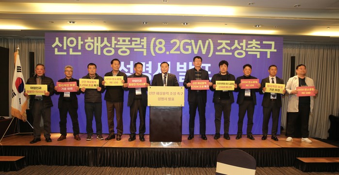이날 본행사에 앞서 신안군어업인연합회는 어업인단체로는 전국최초로 「해상풍력 조성 촉구」 성명서를 발표했다. 신안군어업인연합회는 (사)한국수산업경영인연합회 신안군연합회, 새어민회, 신안군어촌계연합회 등 10개 단체로 구성된 어업인 대표로 “정부의 각종 규제로 인해 해상풍력 사업의 불확실성이 커져 어업인이 어업활동에 투자를 해야할지 결정하기 어려워졌다”며 「정부의 해상풍력 조성 촉구」, 「해상풍력과 수산업 공존방안 및 합리적인 보상방안 수립 요구」 등의 내용으로 발표하였다.