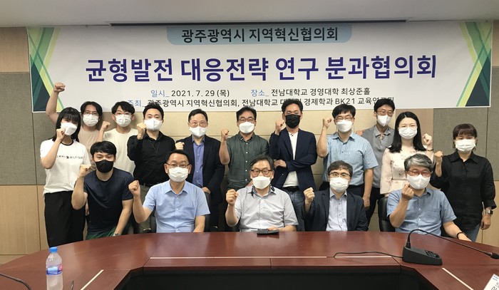 [광주=프레스뉴스] 강래성 기자= 광주광역시 지역혁신협의회와 전남대 대학원 경제학과 BK교육연구팀은 지난달 29일 전남대학교 경영대학 회의실(최상준홀)에서 ‘균형발전 대응전략 연구분과’ 회의를 열고 초광역협력프로젝트와 메가시티(3+2+3) 대응전략 등을 논의했다.
