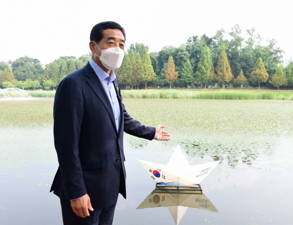 [프레스뉴스] 강보선 기자= 윤화섭 안산시장은 11일 제76주년 광복절을 앞두고 안산호수공원 내 호수에 애국심을 담은 태극 종이배를 띄우며 “시민과 함께 천년안산 역사를 바로 세우겠다”라고 말했다.