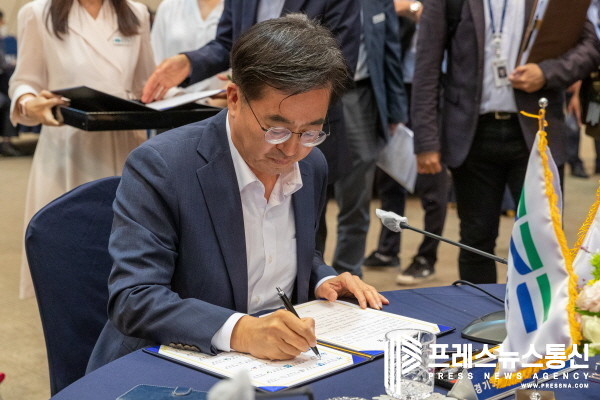 [프레스뉴스] 장현준 기자= 김동연 경기도지사와 민선 8기를 시작한 시장·군수가 취임 후 첫 만남을 갖고 경기도 발전을 위한 협치를 다짐했다. 이들은 도와 시·군 상호 협력·협의기구인 ‘정책협력위원회’를 운영하는 내용 등을 담은 ‘협치합의문’을 채택했다.