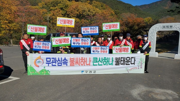 구례군 관계자는 “요즘 산불은 계절에 관계없이 발생하고 있다”라며 가을철 산불조심기간뿐만 아니라 연중 예방 및 대응 체계를 유지해 나갈 계획이라고 말했다.