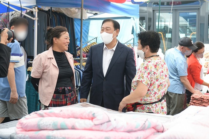 이날 최 시장은 판매되는 제수용품 등을 확인하고 물가상승에 따른 경기침체 등으로 어려움을 겪고 있는 상인들의 애로사항을 직접 경청하고 시 차원의 지원 방안을 논의했다.