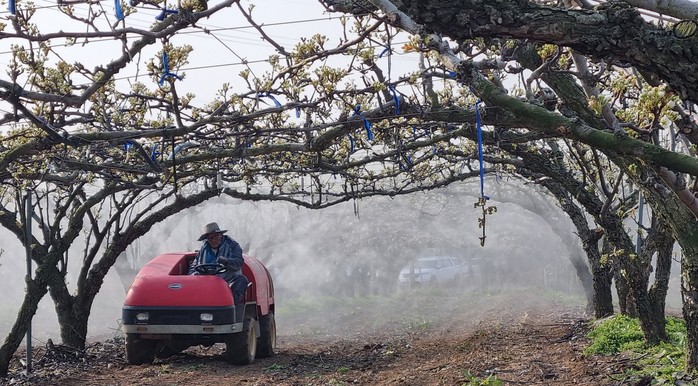 | ▲과수화상병 예방 약제 살포 모습/나주시 제공 |