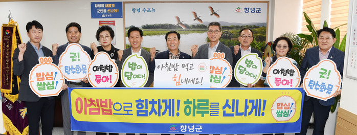 이날 챌린지를 시작으로 창녕군은 관내 유관기관, 지역사회 리더들의 참여를 유도하는 한편, 쌀 소비 촉진을 위한 쌀 중심의 아침밥 먹기 습관을 생활화하고 식량안보의 중요성과 우리 쌀 소비의 긍정적 영향을 알리기로 했다.