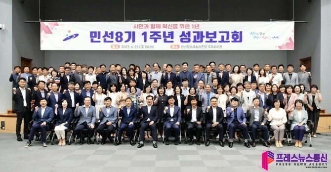 [프레스뉴스] 장현준 기자= 안산시(시장 이민근)는 안산문화예술의전당 국제회의장에서 이민근 시장, 김대순 부시장을 비롯한 5급 이상 간부공무원 130여 명이 참석한 가운데 ‘민선8기 안산시 1주년 성과보고회’를 개최했다고 23일 밝혔다.
