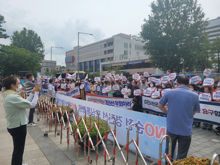 | ▲경전선 전철화 사업 도심 통과 반대 용산 대통령실 앞 집회/순천시 제공 |