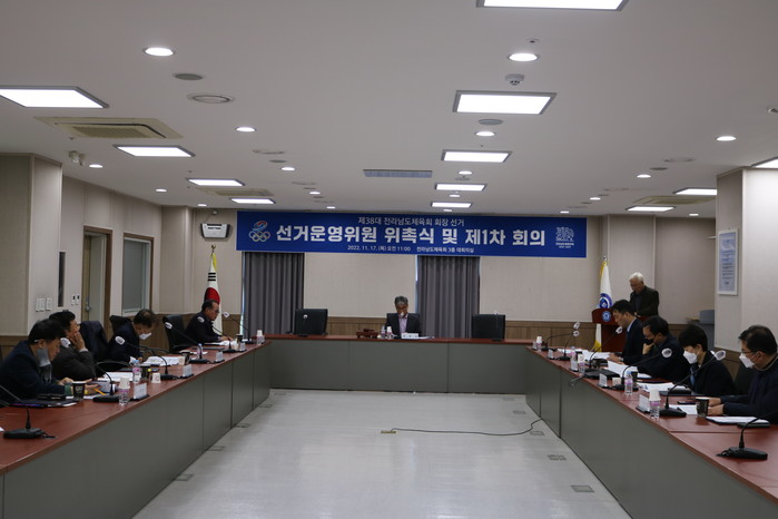 [전남=프레스뉴스] 강래성 기자= 전라남도체육회는 17일 전남 무안군 삼향읍에 위치한 전라남도체육회관 3층 대회의실에서 제38대 전라남도체육회 회장 선거 선거운영위원 위촉식 및 제1차 회의를 진행했다.