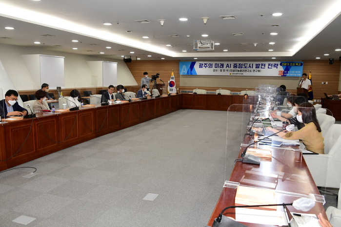 [광주=프레스뉴스] 강래성 기자= 광주광역시의회(의장 정무창)는 5일 오전 8시 시의회 대회의실에서 시의원 및 의회사무처 직원 50여 명을 대상으로 “광주 인공지능 R&D 발전방향 분석”을 주제로 인공지능 전문가인 정민석 인공지능윤리연구소 연구원을 초청하여 특강을 개최했다.