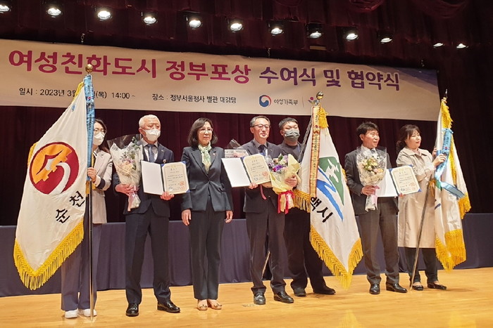 여성친화도시 조성 유공 포상은 여성친화도시 조성 업무를 적극적으로 추진하고, 양성이 평등한 지역사회 조성에 기여한 자치단체 중 서류심사와 현지실사 등을 거쳐 전국 지방자치단체 중 3곳만을 우수기관으로 선정한다.