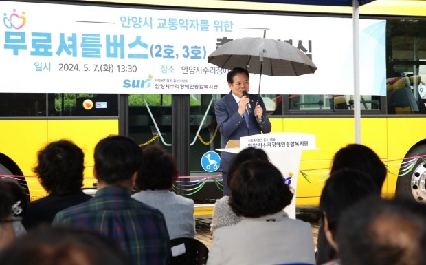 시는 7일 오후 1시 30분 수리장애인종합복지관에서 최대호 안양시장, 장애인 및 단체 등 관계자가 참석한 가운데 무료셔틀버스 출고기념식을 개최했다.