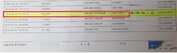 | ▲ 제보자 A씨의 통장거래내역에 2018년 5월 23일 오전 7시 52분에 10만원 입금 기록 |