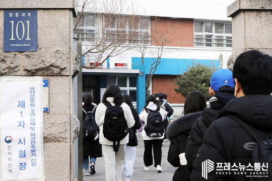 | ▲국가공무원 5급 공채 및 외교관 후보자 선발 제1차 시험이 치러진 지난 3월 4일 서울 강남구의 한 시험장으로 수험생들이 들어가고 있다. (사진=문화체육관광부) |
