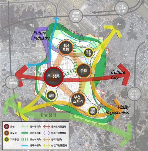 생활권은 대장·춘의, 중·상동, 부천·소사 총 3개 권역으로 계획했으며, 대장·춘의권역은 노후 공업지역 정비 및 역세권 활성화, 중·상동권역은 노후 신도시 정비 및 문화·행정·업무 기능 강화, 부천·소사권역은 도시재생활성화 및 생활기반시설(SOC) 공급을 통한 균형발전 등 발전전략을 제시했다.