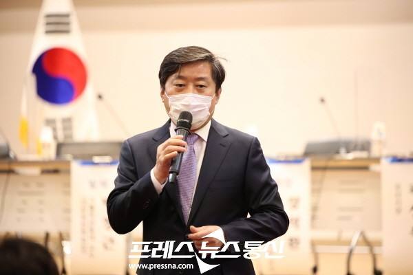 ▲ 황명선 대표회장이 국회의원회관 대회의실에서 개최된 도심하천 수변공원 조성을 위한 국회토론회에서 모두 발언을 하고 있다.(사진=전국시장군수구청장협의회) |