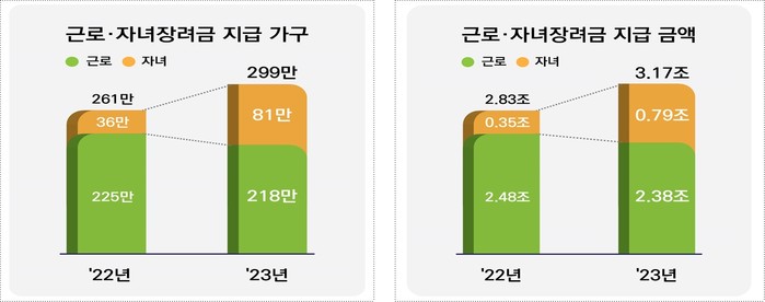 | ▲2023년 귀속 근로·자녀장려금 지급 현황.(자료= 국세청) |