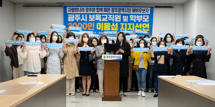 광주지역 어린이집 보육교직원 및 학부모 3천여 명은 “아이들은 우리의 꿈이며 미래다.”며 “부모의 마음을 너무나 잘 알고 있는 이용섭 예비후보야 말로 ‘모든 출생이 존중받는 지속가능한 광주를 실현하고 아이 키우기 좋은 맘 편한 광주’를 만들기 위한 적임자라고 믿기에 광주지역 엄마들의 지지를 당당하게 호소 드린다.”고 밝혔다.