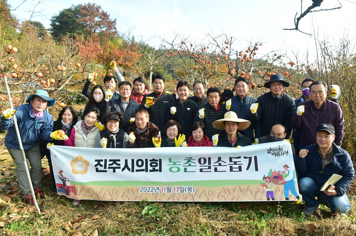 | ▲ 진주시의회, 감 수확 농가에 일손 돕기(사진=진주시의회) |