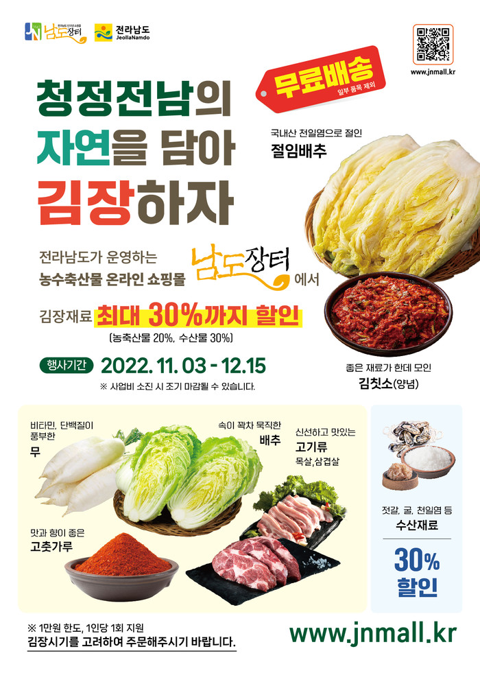 | ▲김장철 30%남도장터 할인 행사 포스터/전라남도 제공 |