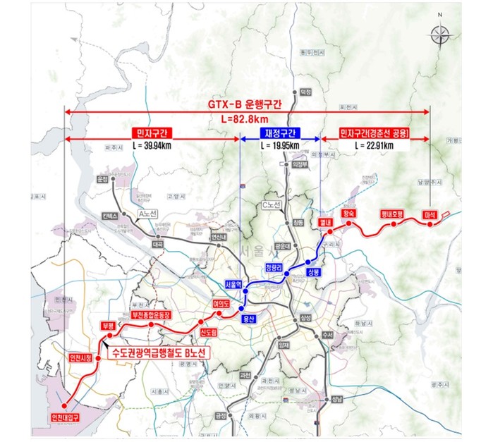 수도권 광역급행철도 B노선 사업은 인천 연수구~경기 남양주시 구간에 광역급행철도를 건설하는 총사업비 4조 2894억 원의 민간투자사업(BTO)이다.