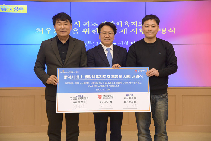 광주시는 2일 시청 비즈니스룸에서 ‘생활체육지도자 호봉제 시행 서명식’을 개최했다.