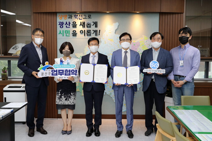 이날 구청장실에서 진행된 협약식을 통해 박병규 광산구청장과 차준섭 스마트인재개발원 원장은 4차 산업을 선도할 지역의 혁신인재 발굴과 양성을 위해 양 기관의 상호교류와 협력을 약속했다.