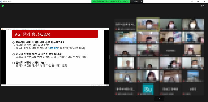[광주=프레스뉴스] 강래성 기자= 광주시교육청이 25일 ‘학교 내 대안교실 업무담당자 연수’를 코로나19 상황을 반영해 비대면 원격으로 개최했다.