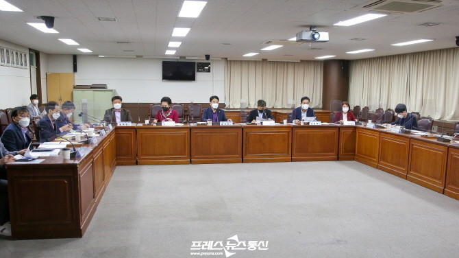 ▲지난 한해 의원연구단체 소속돼 활동한 의원들의 연인원이 22명에 이를 정도로 의원들의 의원연구단체 참여율이 높았다. 사진은 지난 2021년 5월 10일 의회 대회의실에서 열린 ‘Green & Clean 21’의 용역 착수 보고회의 모습.(사진=안산시의회) |
