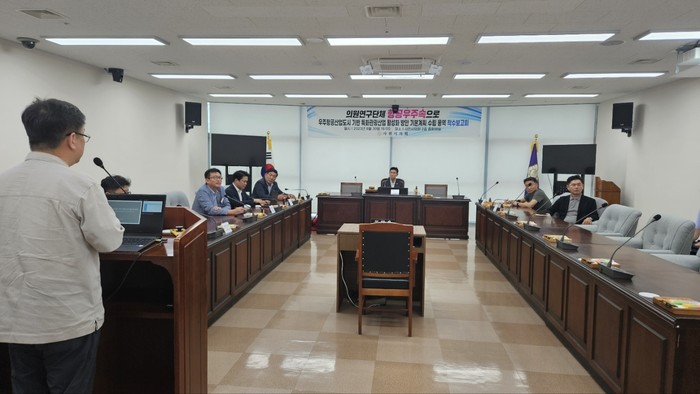 이번 보고회는 연구단체 소속인 김규헌, 김민규, 박병준, 박정웅, 전재석, 최동환 의원을 비롯해 용역수행 관계자 등이 참석해 심도있게 진행됐다.