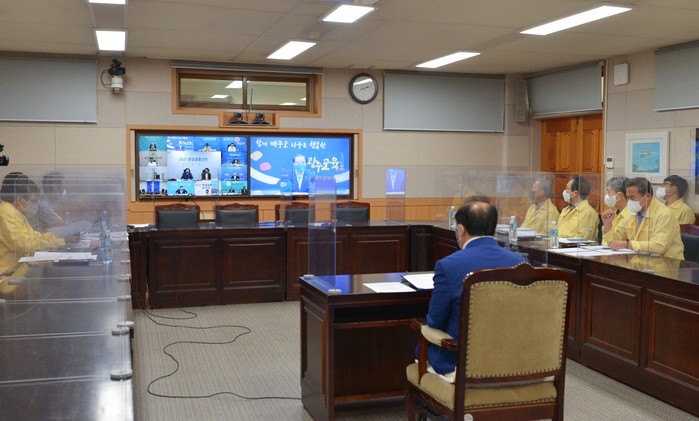 [광주=프레스뉴스] 강래성 기자= 전국시도교육감협의회(회장 최교진, 이하 협의회)는 9월 13일 제80회 총회를 개최하여 ‘2021 환경공동선언, 그리고 미래세대에게 듣다’와 ‘고교 교육과정 정상화를 위한 대학수학능력시험 개선안’에 대해 「교육의제 토의」를 실시했다. 이번 총회는 코로나 19로 인하여 비대면으로 진행되었다.
