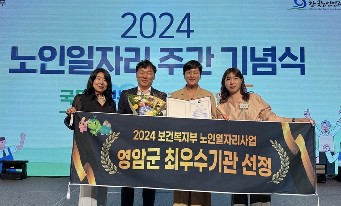 [전남=프레스뉴스] 강래성 기자= 영암군(군수 우승희)이 23일 보건복지부 노인일자리 주간 기념행사에서 ‘2024년 노인일자리 및 사회활동 지원사업 시장형 부문’ 최우수기관으로 선정돼 장관상을 받았다.
