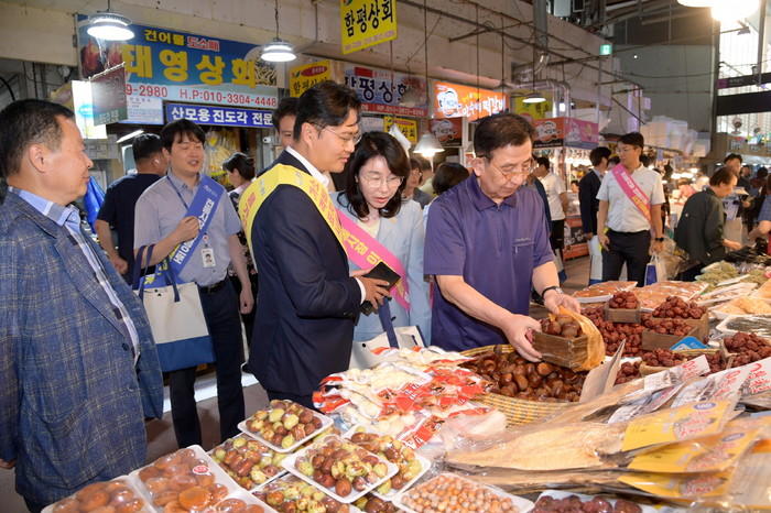회의를 마친 뒤 김광진 문화경제부시장을 비롯한 참석자들은 장보기를 통해 농특산물과 추석명절 물품 등을 구매하고 상인들을 격려했다.