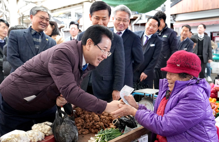 영암5일시장서 설 명절 장보기·시장 상인 격려