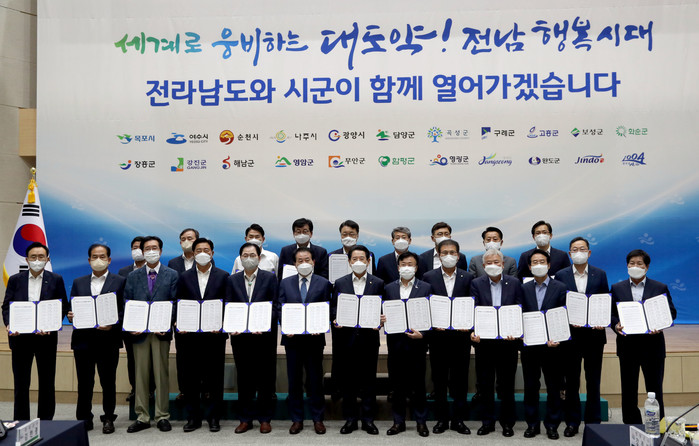 [전남=프레스뉴스] 강래성 기자= 전라남도와 22개 시군이 본격적인 민선8기 출범을 맞아 한 자리에 모여 ‘세계로 웅비하는 대도약! 전남 행복시대’ 실현을 위해 상생 협력하기로 다짐했다.