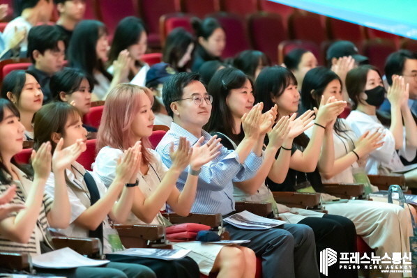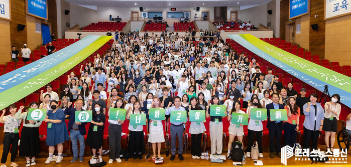 | ▲ 3일 오전 아주대학교 연암관1층 대강당에서 열린 경기청년 갭이어 프로그램 참여자(2기)만남 행사에서 김동연 경기도지사와 갭이어2기 참여 청년 300여명이 기념촬영을 하고 있다.(사진=경기도) |