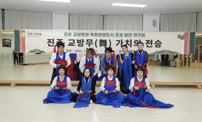 | ▲진주시의회 의원 연구단체 ‘진주 교방문화 특화관광도시 조성 방안 연구회’가 7일 진주교방무(舞) 체험활동을 시작으로 본격적인 연구에 돌입했다고 밝혔다 (사진=진주시의회) |