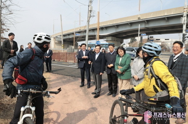 [프레스뉴스] 장현준 기자= 시흥시(시장 임병택)는 3월 16일 시화방조제 자전거길에서 ‘경기 햇빛 자전거길 1호’ 디자인 태양광 조성을 기념하는 준공식이 열렸다고 밝혔다.