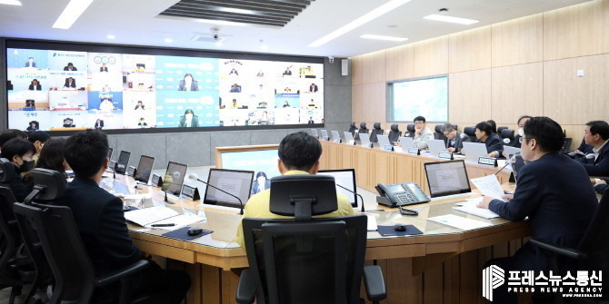 | ▲ 5일 오전 경기도청 재난안전 제1영상회의실에서 오병권 행정1부지사, 오후석 행정2부지사 및 31개 시·군 부단체장, 관련 실국장 등이 참석한 가운데 2023년 제4차 도-시·군 부단체장 (영상)회의가 열리고 있다.(사진=경기도) |