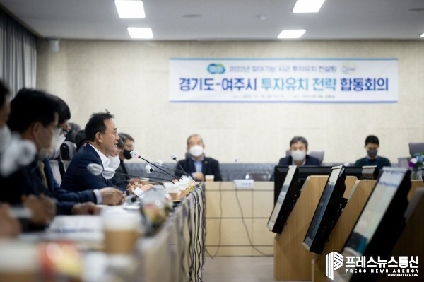 경기도는 18일 여주시청 회의실에서 ‘경기도-여주시 투자유치 전략 합동회의’를 열었다. 이날 회의에는 이충우 여주시장을 비롯해 손계운 지속발전국장, 이민우 경기도 투자진흥과장 등 관계자 30여 명이 참석했다.