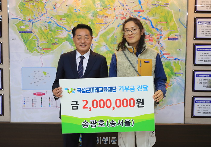 | ▲봉우리스튜디오 대표 송광호, 곡성군미래교육재단에 기부 (사진제공=곡성군) |
