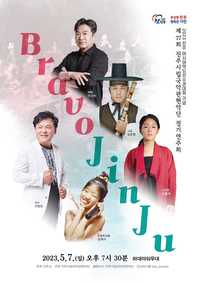 이번 정기연주회는 2023년 진주아시아역도선수권대회 개최 축하공연으로 ‘Bravo Jinju’라는 주제로 다양한 음악을 국악으로 선보일 예정이다.
