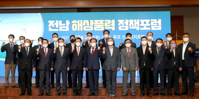 전남도는 28일 목포 신안비치호텔에서 녹색에너지연구원과 함께 해상풍력 발전사업의 바람직한 방향을 찾고 정책 공감대를 형성하기 위해 ‘전남 해상풍력 정책포럼’을 온.오프라인으로 동시 개최했다.