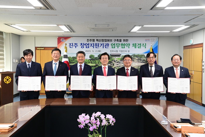 진주시와 경상국립대학교, 중소벤처기업진흥공단, 한국산업기술시험원, 한국세라믹기술원, 경남테크노파크, 경남창조경제혁신센터 등 7개 기관은 이날 업무협약을 통해 ‘진주 창업지원기관 협의회’를 구성하고 향후 창업 네크워크 지원체계 구축을 통한 기술창업 촉진, 창업생태계 활성화를 위한 활동을 추진할 계획이다.