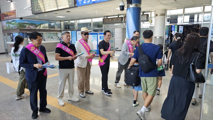 지난 21일, 고성군의 주요 현안 과제를 해결하는 4명의 대외협력관과 고성문화관광재단 및 해당 부서 직원이 역 이용객을 대상으로 행사가 개최되는 고성군 당항포관광지에 방문할 것을 적극적으로 홍보하였다.