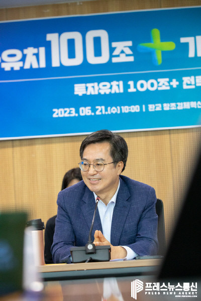 김동연 지사는 21일 판교 창조경제혁신센터에서 관련 실국장, 산하 공공기관, 산업계 전문가, 도내 투자기업 등 투자유치 주역들과 머리를 맞대고, 향후 민간 투자유치 100조 이상 달성을 위한 경기도의 실천 전략을 논의하는 ‘투자유치 100조+(플러스) 전략회의’를 열었다.
