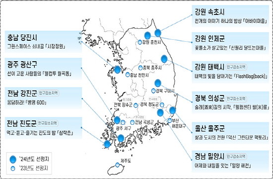 한편 올해 선정된 사업지는 지역의 개성있는 자원과 청년문화를 접목해 지역에 생기와 매력을 높일 계획이며, 인구감소지역도 5곳이 포함되어 있어 침체된 지역경제에 활력을 불어넣을 것으로 기대된다.